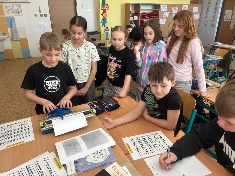 Žáci 3., 4. a 5. tříd si vyzkoušeli, jaké to je číst a psát bez pomoci zraku. Více