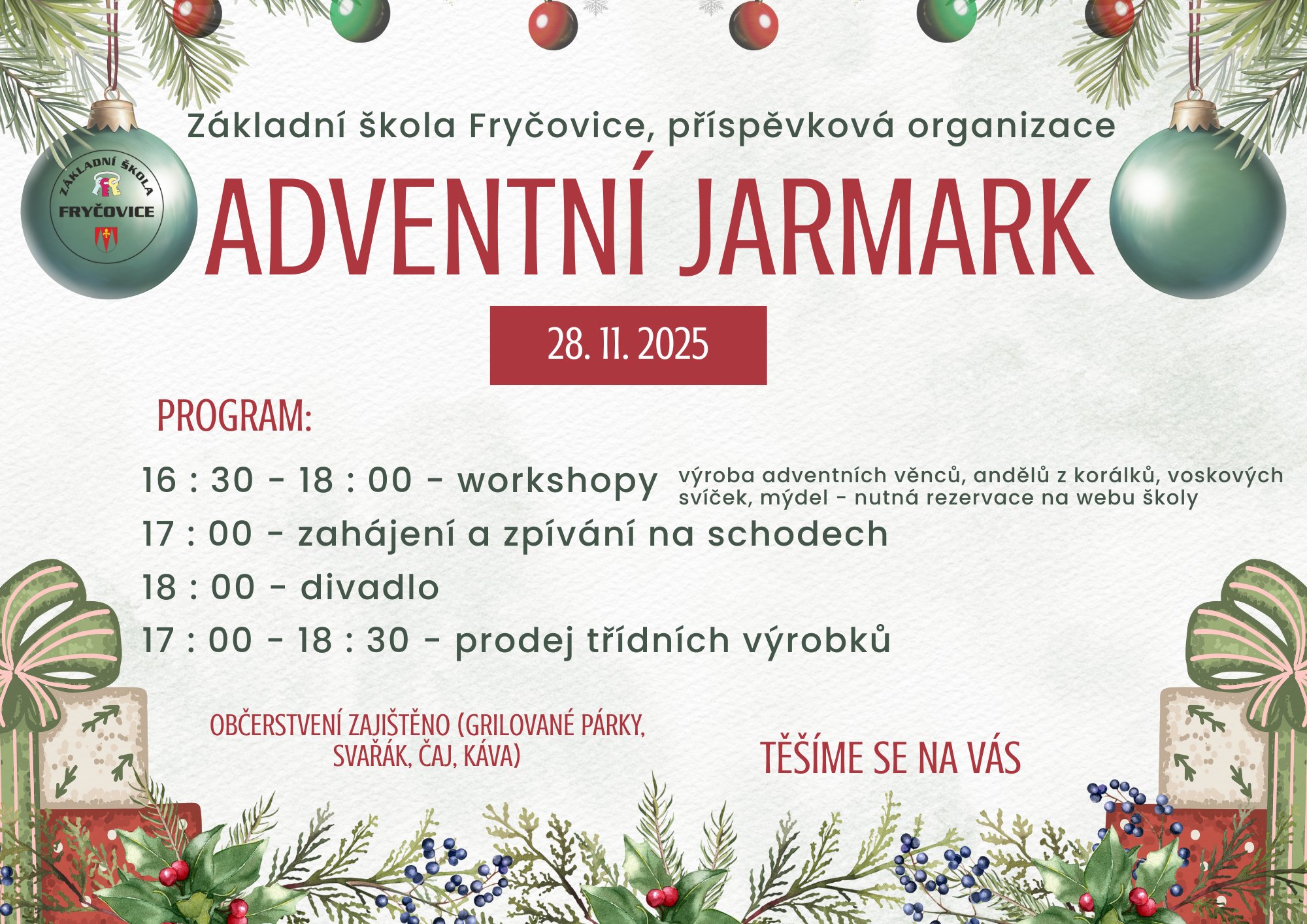 Srdečně vás zveme na adventní jarmark, který se uskuteční v pátek 28. 11. Více