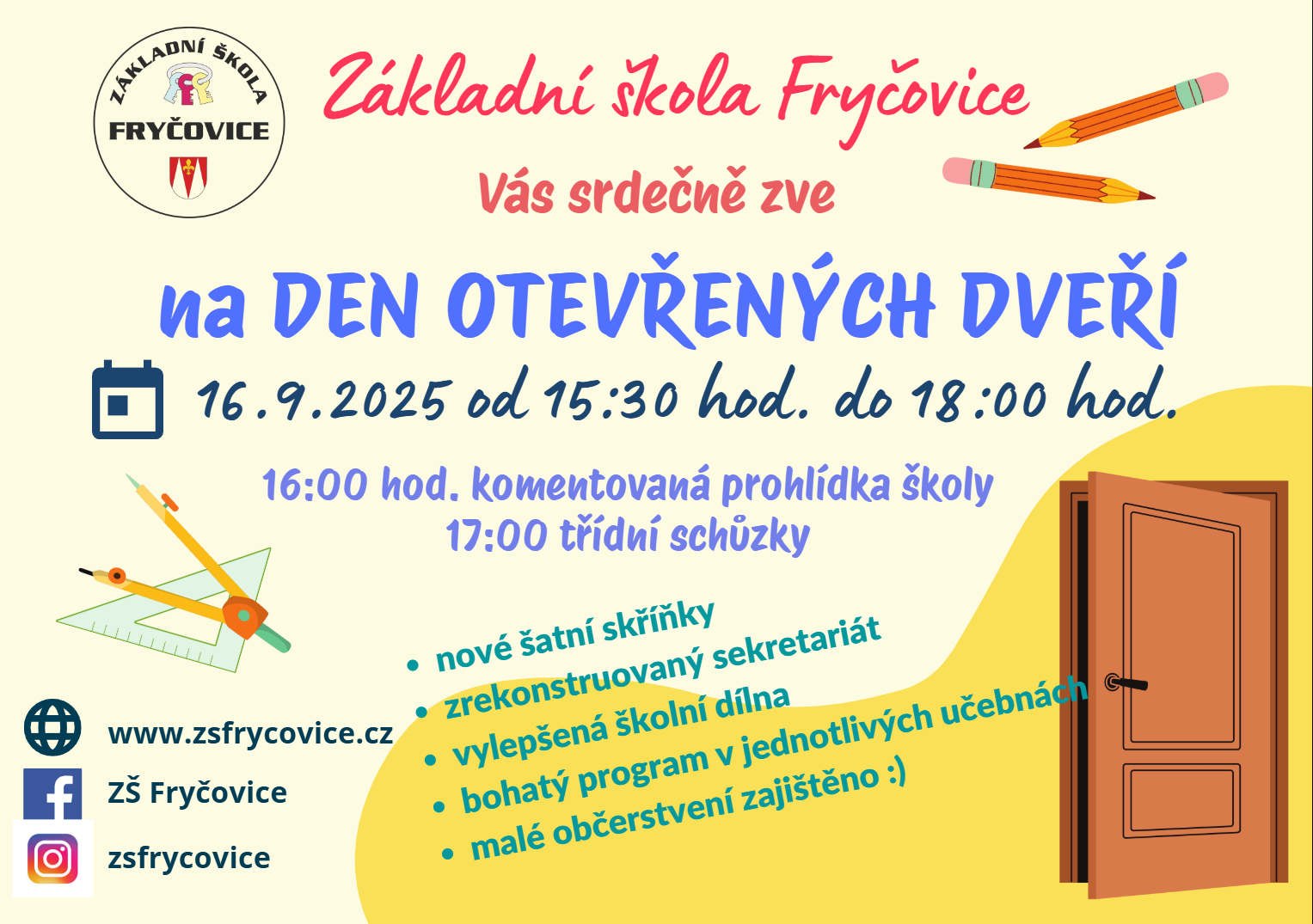 Den otevřených dveří 16. 9. 2025 od 15.30 hod. Více