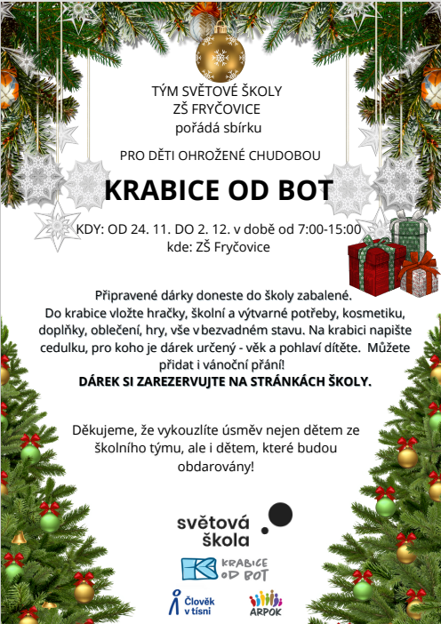 I v letošním roce tým žáků Světové školy pořádá sbírku dárků pro děti ohrožené chudobou. Více