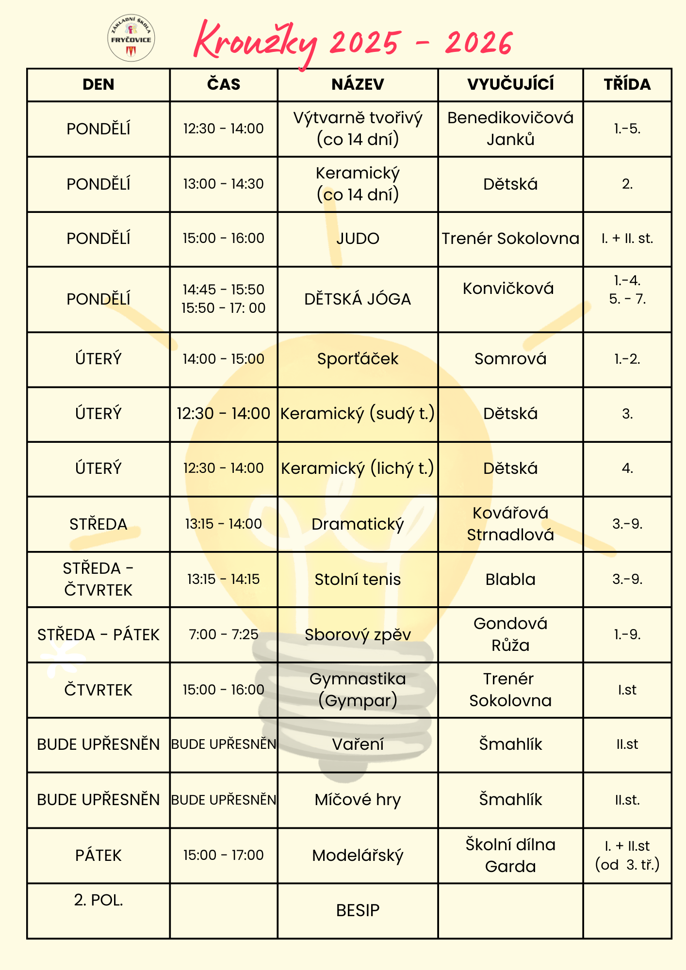 Přehled kroužků pro školní rok 2025/2026. Více