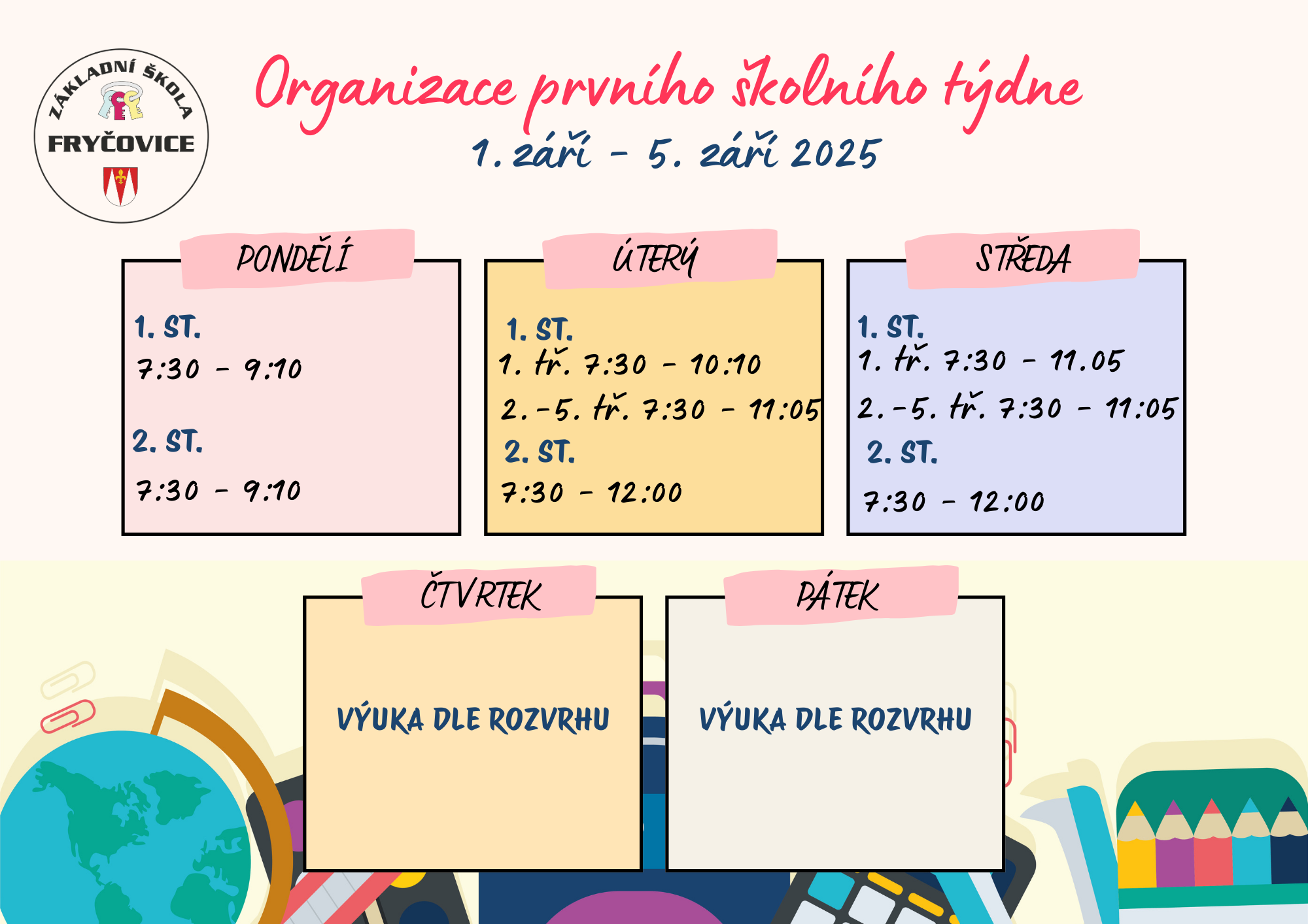 Organizace prvního školního týdne 1. září – 5. září. Více
