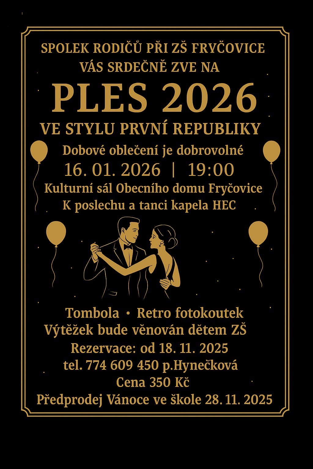 Spolek rodičů při ZŠ Fryčovice zve všechny rodiče a jejich známé na ples přátel školy. Více