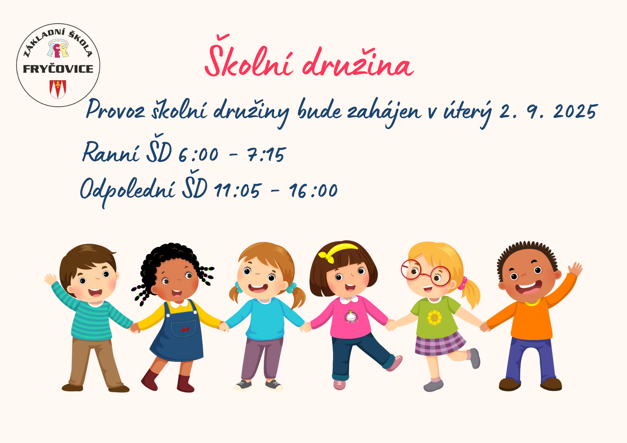 Provoz ŠD zahájen 2. 9. 2025. Více