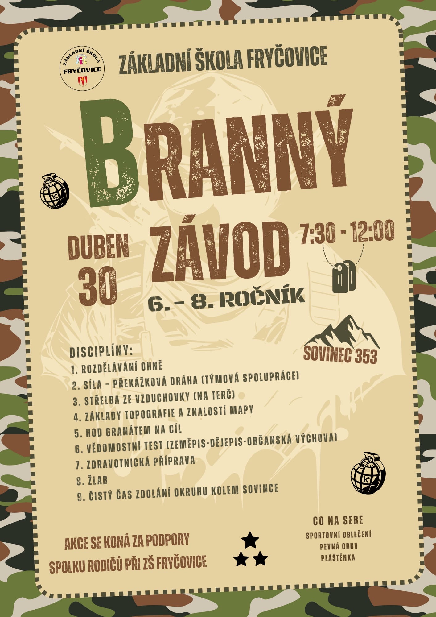 Dne 25. října 2024 se na Základní škole ve Fryčovicích konal tradiční branný den, kterého se zúčastnilo 14 týmů...Více